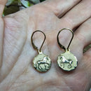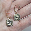 Our Piaffe Medallion Series has a round or squared shape, so Tempi continued this with the earrings. The squared measures 1/2 inch squared and 1 1/8 inch tall overall. The round version measures 1/2 inch round and 1 1/8 inch tall overall. This is a right and left facing pair. There are many variations of this ever popular earring design. Here is a lever back. Shown in Sterling Silver. Also available in our Rose Bronze--with a sealant, so no polishing!! ...... and the lever backs are gf over sterling silver.