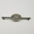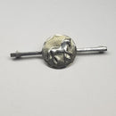 This stock pin measures 2 inches in length and the centerpiece is 1 inch round. This stock pin is our own creation which is thick so it cannot bend, and the bar and centerpiece are cast in 1 piece. Shown in Sterling. Match this up with our other WarmBlood Piaffe pieces: Earrings, Ring, Buckle choices, and bracelets.