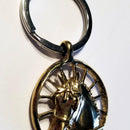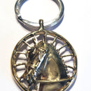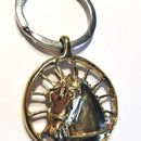 Carriage Horse Key Fob As part of Tempi's Driving designs, we have taken the competitive Carriage Horse and created a useful unique key fob. The design measures 1 1/2 inch round and add the steel split ring, measures 3 inches tall overall. The Driving Horse has blinders, specialty tack, and a Liverpool bit. Available in Yellow Bronze or White silvery Bronze. There is some room to engrave on the back. Just send an email to inquire, or add to "Customer Notes" during checkout. Hand finished.