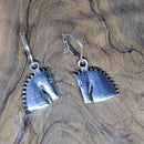Contemporary Horse Lever Back Earrings This earring is the medium version of this design. It is double-sided, so you will have a right and left facing. The horse has a clean contemporary look, or as some describe, an "ancient" horse look, or a "Roman Horse" look. The earring measures 5/8 inch wide and 1 1/4 inch tall overall. Sterling Silver OR our lovely Rose Bronze. Lever backs are sterling silver, or gold over sterling silver--no base metal. Not weighty on your ear and a very popular design!