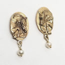 Fancy Hunter Jumper Oval Stud Earrings with Pearl Drop