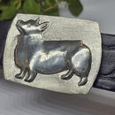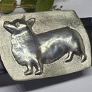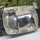 Corgi Lovers, I am working on your requests! Here is a medium sized buckle with a high polish finish of this beloved dog. These are among the smartest 4 legged friends in the barn! This version has the raised relief gazing up at you with the requested polished finish. Buckle measures 2 3/8 inches wide x 1 3/4 inches tall. The sides of this buckle have a contoured shape so it is not a perfect rectangle. Fits a 1.25 inch wide belt. Available in silver tone or yellow tone [ white jewelers bronze or our buttery yellow bronze].