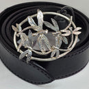 Tempi has a large collection of dragonflies! Three sizes of our Dragonflies dart about on the 2 7/8 inch wide buckle. Space open around the dancing group allows the color of your leather belt to show through. Just magical!!