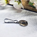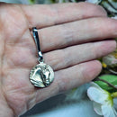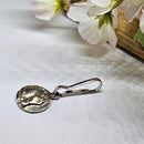 Our classic dressage horse raised sculpted relief with a double bridle and braided mane as a zipper pull. These pulls make a great addition to your jacket, sweater, wallet, purse ot back pack. Be creative with where you use it! Makes a great little gift for someone special as a thank you or remembrance. The horse disc measures just under 3/4 inches round andjust under 1 3/4 inches tall overall with the clip. Available in silver bronze or yellow bronze. Sold as a single zipper pull.