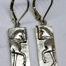 This design is a carry over of "Enter at A" Dressage Horse and Arena Series. These design measures 3/4 inches tall and 5/16 inches wide. The horse has very fine detail with a braided mane and double bridle. There is a right and left facing version. With the leverback the earring is 1 3/8 inches tall overall. Sterling Silver