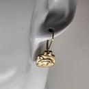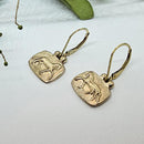 This design has taken a while to get right to me....I have an old pair of Athena gold earrings with unusual bead work and I hoped to bring that idea into this design. This horse design started as a buckle, so there is a series for this design. I also liked the right and left version of this sculpted trotting horse. Since I prefer to add new shapes, this earring design is available in an oval and this rectangle. This rectangle measures 9/16 inch wide x 1/2 inch tall, and 1 1/16 length overall. The bead work is cast in place and leaves just enough room to fit the lever back earring through it. Available in all sterling silver, or rose bronze with gold vermeil over sterling lever back. More photos coming!!