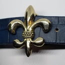Buckle measures 2 1/4 inch tall x 2 inches wide and fits a 1 1/4 inch width leather belt.