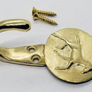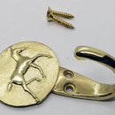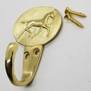 Foal Trotting Hook Another special design worthy of this accessory. Hook measures 3 inches tall overall. The oval foal measures 1 7/8 inches wide x 1 1/2 inches tall. and has a sculpted raised relief. Arrives with 2 wood screws for hanging. Available in Yellow Bronze or White Bronze