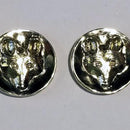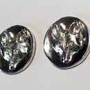 Classic Fox Mask, a favorite of Fox Hunters. These measure 1/2 inch round with high polish background. Fox head is a raised relief contoured and has a frosty fur look from a special bur effect. The steel post on the back is set a bit down from the top so it rests beautifully on the ear. If you need a sterling post or different metal, please email, as we can accommodate various post needs. Sterling Silver