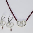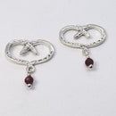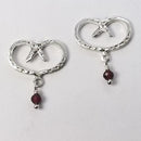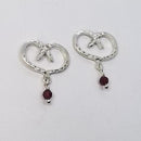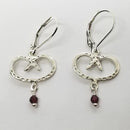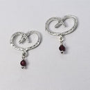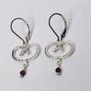 Horse Shoe Hearts Petite Earrings with Garnet Drop /Choice Stud OR Lever Back