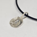 Just like our other sizes, this pendant has the same design in a small version. This horse's head fit on a 1/2 inch round disc with the raised sculpted form, a hunt bridle and braided mane. There is an ample bail for a leather neck cord or beaded necklace in proportion to the pendant size. A few more photos coming!