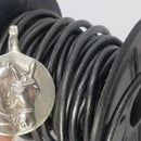 Leather Neckcord 3 millimeters Round Our large pendants typically arrive to you on a 3 millimeter round black neck cord. Tempi also offers other colors, listed here. You are welcome to request a different color [other than the default color black] by consulting this posing and add any comments in the Customer Note box during checkout. if you choose from this posting, the online store will charge $12. There is no charge to pick a color other than Black. Tempi offers a 16, 18, or 20-inch length. Gold or silver metal finish is the choice for the end caps and lobster claw clasp. Leather colors are Black, Chocolate Brown, Metallic Grey, Teal, Blue.