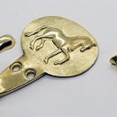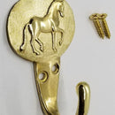 Our very popular Piaffe Horse design is an accessory Hook. This hook would serve you well in your barn or tack room, or in your bath for your towel or robe. Hook measures 3 inches tall overall. The horse oval measures 1 7/8 inch wide and 1 1/2 inch tall. item arrives with 2 wood screws for hanging. Available in Yellow Bronze or White Bronze.