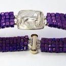 Piaffe Horse Squared on Woven Bead Bracelet This bracelet measure 1/2 inch wide. the Piaffe Horse measures just under 3/4 inches tall x 3/4 wide. Tempi works jointly with another artist who creates the woven bead bracelet and we insert our designs as centerpieces. You will not find these made anywhere else!! The best fit is 1/2 inch larger than your wrist. The average length is 7 inches. The beads are 3millimeter square and woven with a high tensile cord. The clasp is a "Tube Slide Lock [ see photo]. Any length is available. Please email your wrist size. Please allow extra time if your exact size is not in stock.
