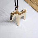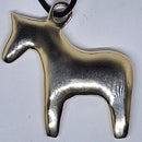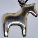 Often named as the "Swedish Pony, our version is a bit different and quite large!! This new holiday ornament is a two sided, a puffed pony ready to hang on your holiday tree, in a window, from your car mirror, a purse, your backpack, anywhere you like! This chunky pony measures 1 3/4 inches wide x 1 5/8 inches tall, and approx.. 3/16 inches thick. With the loop and leather hanging cord, the pony measures 5 1/4 inches overall. Available in Golden Bronze or Silver Bronze. There is a larger version and a smaller version, same color choice. The smaller Pony Nugget measures 1 2/3 inches wide x 1 3/8 inches tall and 4 3/4 inches tall overall with loop and hanging leather cord. The smaller Pony Nugget is listed separately.