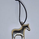 Often named as the "Swedish Pony, our version is a bit different and quite large!! This new holiday ornament is a two sided, a puffed pony ready to hang on your holiday tree, in a window, from your car mirror, a purse, your backpack, anywhere you like! Available in Golden Bronze or Silver Bronze. There is a larger version and a smaller version, same color choice. The medium Pony Nugget measures 1 2/3 inches wide x 1 3/8 inches tall and 4 3/4 inches tall overall with loop and hanging leather cord. Just adorable!! Can be a Key fob too!!