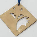 This Fox seems to capture people who are always looking for "foxy" things. Cast in our Rose Bronze, with a sandblasted finish, he definitely stands out. This ornament measures 1.75 inches x 1 7/8 inches and hangs from a colored leather cord. Available in a polished yellow bronze [ yellow tone], polished White bronze [ silver tone], or a sandblasted finish. More photos coming! This item is a limited edition cast item for the Holiday Season- Nov/ Dec- only, then it is taken off site to return again next Holiday season.