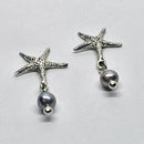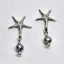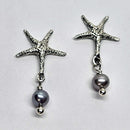 Another nautical piece! This Star Fish design is a realistic as can be. The five legs have a textured finish and their own shape and stance. One leg has a very small jump ring to allow for the drop. Tempi has used a lovely soft grey freshwater pearl, about 3/16 inch in size to coordinate well with the sterling silver metal. The starfish is 9/16 inch wide and 1 inch tall overall with the pearl drop.